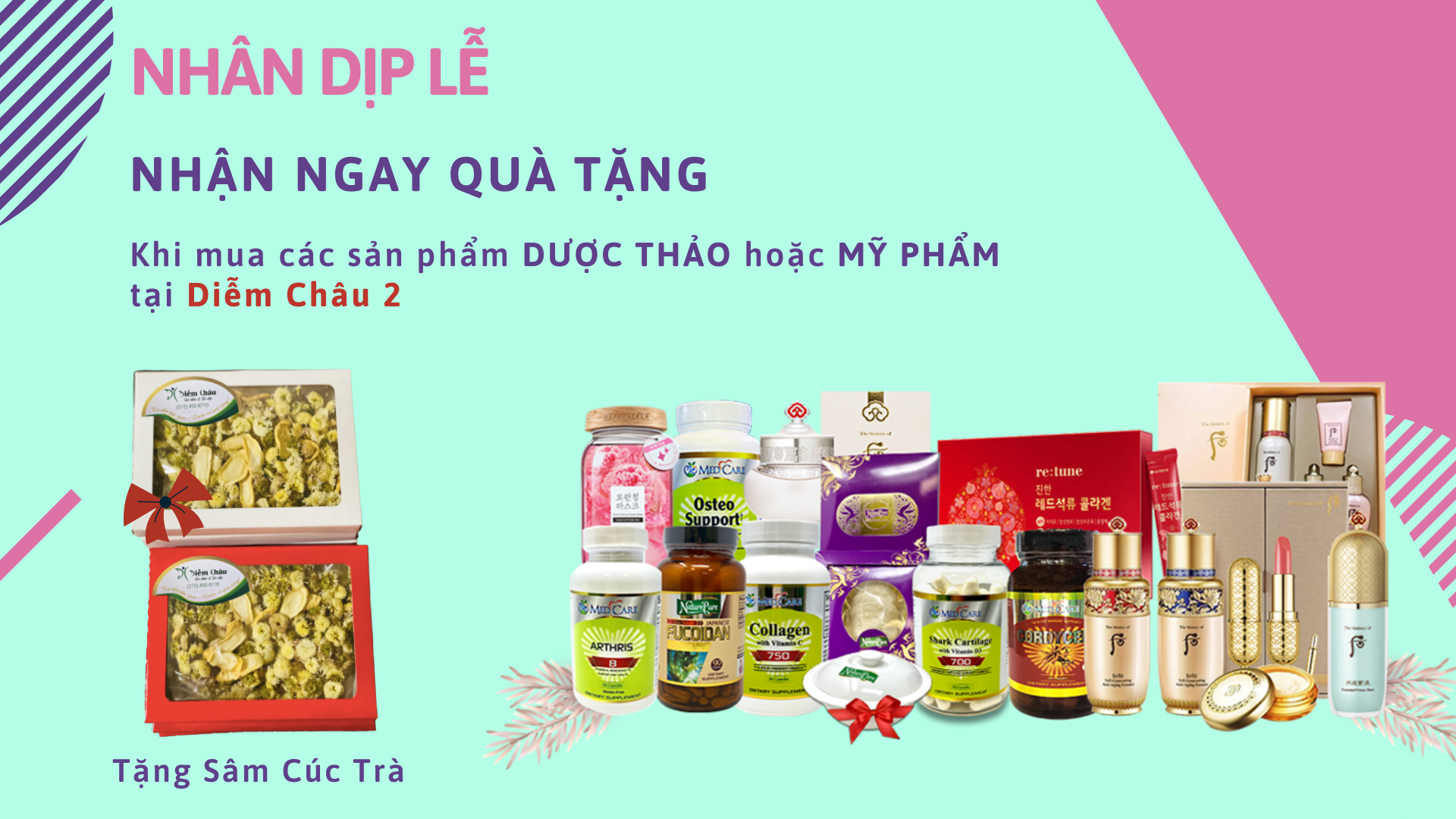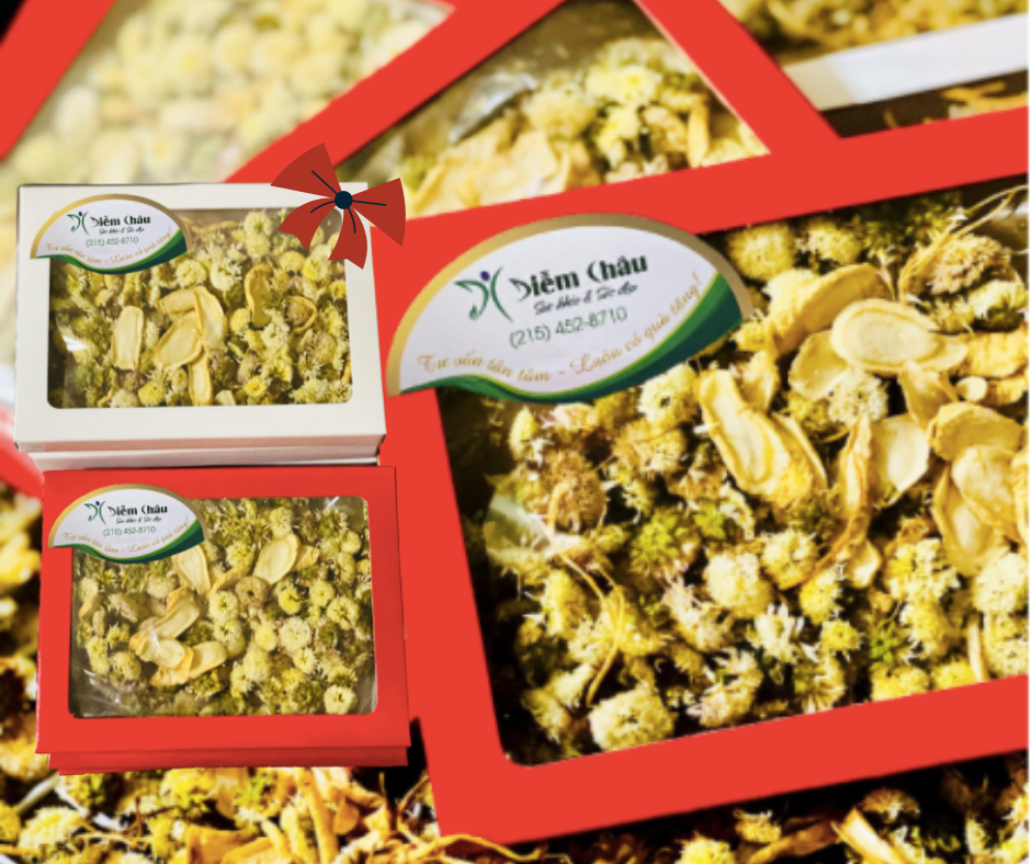 Sâm Cúc Trà - Là sự kết hợp hoàn hảo của 3 vị thuốc quý gồm Cúc Hoa, Nhân Sâm Hoa Kỳ và Giảo Cổ Lam. Cúc Hoa quý hiếm ướp cùng Giảo Cổ Lam được nghiên cứu và trồng organic trong Jennifer’s Alternative Garden tại Hoa Kỳ kết hợp với Nhân sâm thượng hạng Wisconsin tạo nên giá trị dinh dưỡng và tinh thần quý giá.